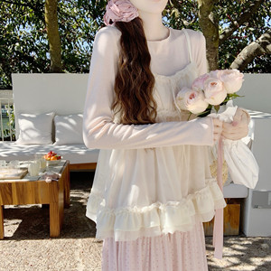 黑色蕾丝打底衫内搭薄款网纱上衣