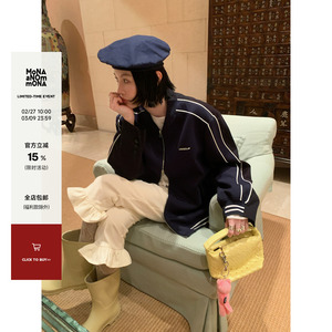 Mona张绮贤 时尚撞色条纹棒球服太空棉字母印花外套春季新款2026