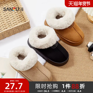 三福棉拖鞋女款经典绒感靴保暖御寒室内家居外穿全包拖鞋2025新款