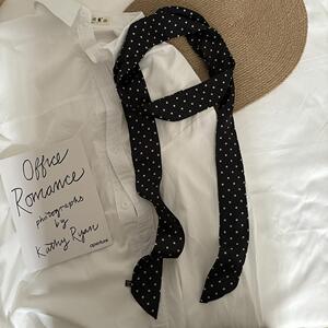 韩系法式百搭波点长条丝巾女丝带