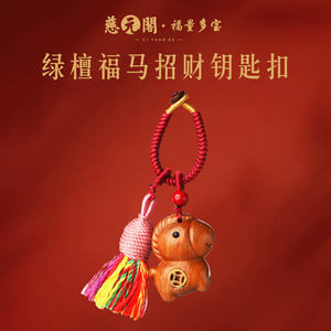 普陀山绿檀福马招财钥匙扣挂件