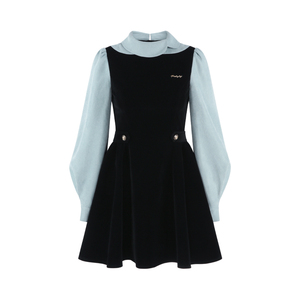 高级感拼接黑色丝绒连衣裙女冬季