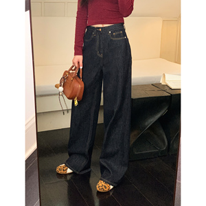 pusumede 摩登sense 复古阔腿牛仔裤女宽松显瘦垂感直筒拖地长裤