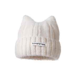 可爱小熊耳朵猫咪蝴蝶结毛绒帽女