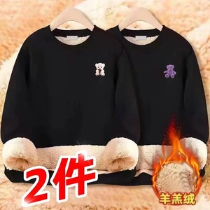秋冬季宽松大码加绒加厚卫衣女士圆领套头保暖羊羔绒百搭休闲上衣