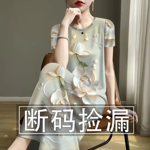 清仓捡漏~夏季短袖长裙连衣裙女款爆款印花2025新款洋气遮肚裙子