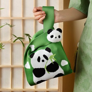 大熊猫文创针织袋手提包包周边上班杂物小拎包手腕编织布花花成都