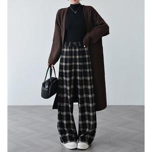 格子裤女春24-113毛秋冬季绒高腰宽松蕉裤毛呢裤子醋酸羊毛加香阔