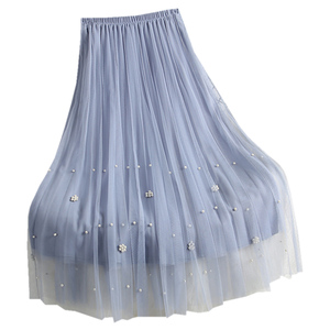 网纱半身裙a字大摆裙子钉珠百褶