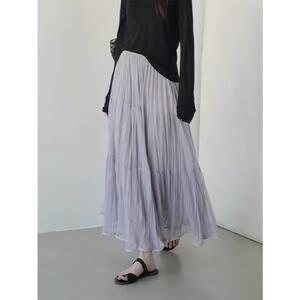 早春季高腰压褶网纱半身裙女香芋紫色A字裙子蛋糕裙显瘦垂感长裙