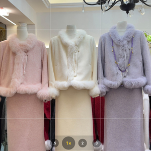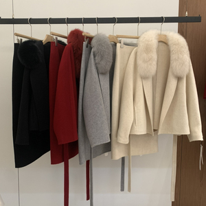 冬上新法式慵懒狐狸毛领羊毛外套+半身裙精致套装(含100%羊毛)