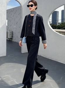 26年春款!经典拼接时尚马甲+显瘦休闲裤两件套套装