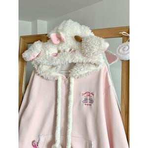 连可爱刺绣小绵羊卫衣女子个春秋甜美软妹学院宽355松小羊羔毛帽