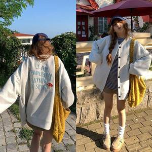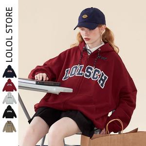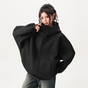 美式双连面绒帽卫衣开衫女202UQK4新潮流尚宽松时百款搭显瘦外套