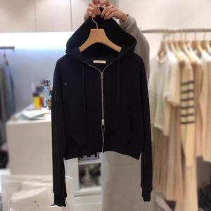欧货短款套灰色双向拉链卫外女220231208025新春秋纯棉款衣帽衫小