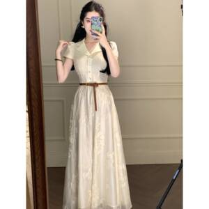 法式甜美郁金香连衣裙女夏可爱少女森系田园风收腰显瘦小清新裙子
