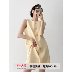 但你butyou 黄色法式高级感肌理感法式小香风无袖背心连衣裙女