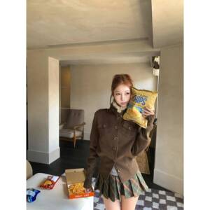 Pinksoya 松茶可可 高级感覆古金属扣外套女秋季新款呢子外套上衣