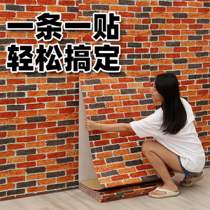 复古砖头墙纸自粘仿真砖纹砖块墙贴纸红砖防水防潮用自贴墙