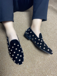 外贸新款韩版男士一脚蹬铆钉男鞋尖头丝绒夜店发型师个性鞋45、46