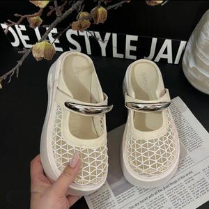 松糕厚底增高勃肯鞋渔网包头半拖鞋女夏外穿2025新款一脚蹬凉拖鞋