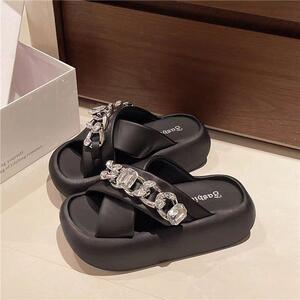 增高厚底绝美水钻交叉拖鞋2025夏季新款外穿时尚休闲外出气质高级