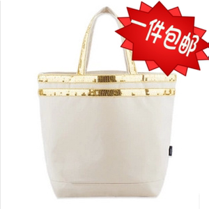 包邮新款日杂附录金色亮片白色托特手拎包单肩包购物袋新款可批