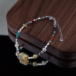 天然淡水珍珠水晶手链复古轻奢古法漆珠手串小众高级感原创手作