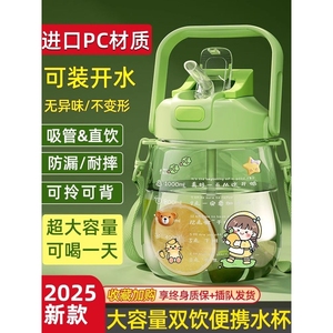 双饮大肚杯2025新款儿童水杯大号大容量吸管杯子女生水壶户外便携