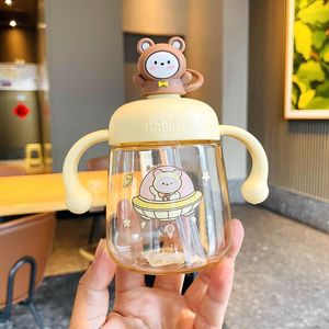 儿童宝宝幼儿园牛奶杯吸管家用耐摔学饮敞口300ML迷糊不喷漏