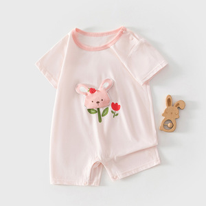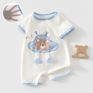 莫代尔夏季薄款婴儿连体衣新生套头短袖短裤爬服宝宝圆领哈衣卡通