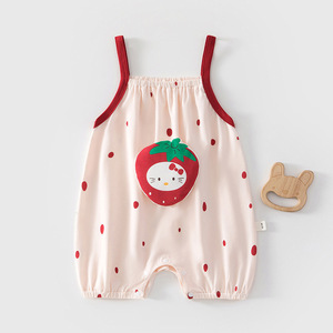 婴儿吊带连体衣夏季薄款女宝宝草莓HelloKitty哈衣新生儿纯棉透气