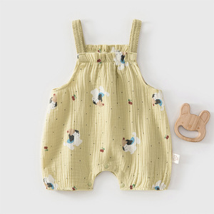 夏季韩版女宝宝洋气小碎花吊带连体衣纱布单层爬爬服婴儿吊带爬服