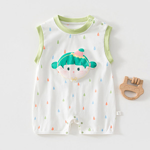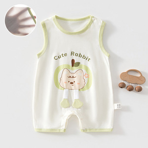 婴儿夏季衣服卡通新生儿无袖哈衣薄款爬服宝宝可爱背心连体衣夏装