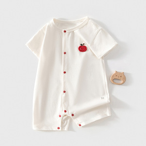 婴儿新生儿衣服夏季小苹果纯色无骨爬服宝宝连体衣精棉哈衣夏季