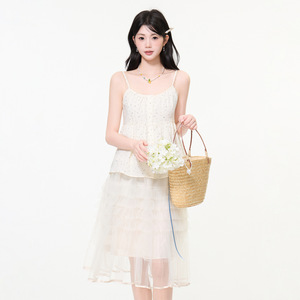 法式立体亮片花朵U领吊带背心女夏季修身掐腰绝美外穿无袖短上衣