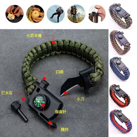户外五合一多功能求生手链,荒野求生伞绳手环