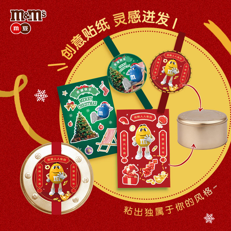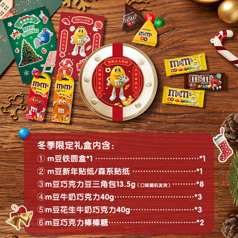 mm豆圣诞巧克力礼盒DIY铁盒,咬一口,口感醇厚,奶香味浓郁,每颗巧克力豆里都藏着满满的幸福感!