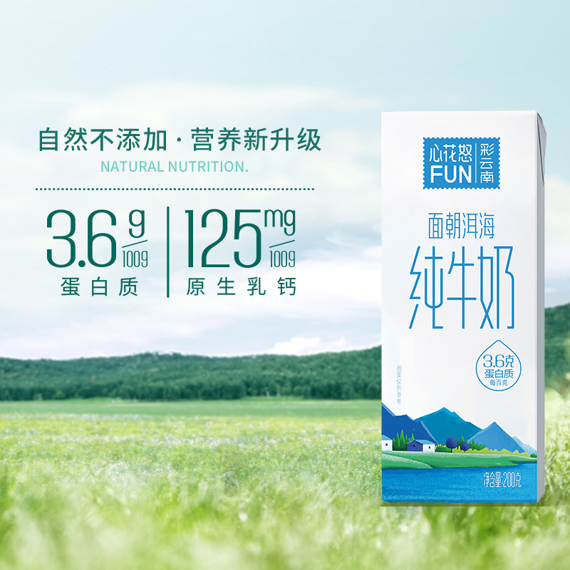 新希望雪兰心花怒FUN3.6g蛋白质风景纯牛奶200g*21盒*1箱