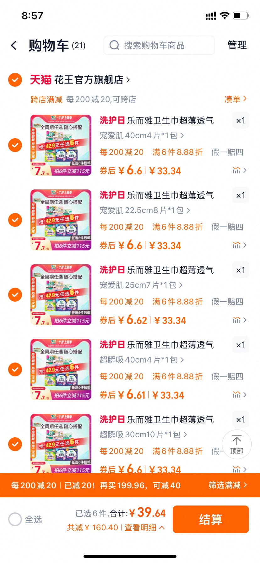 花王乐而雅卫生巾 任选6件 到手 39.64